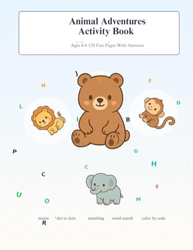 Animal Adventures Activity Book for Kids Ages 4–6: Mazes, Dot-to-Dots, Matching, Word Search & Color-by-Code — 120 Fun Pages with Answers