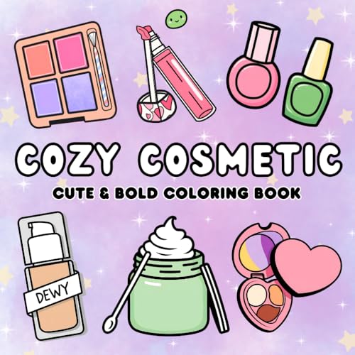 Cozy Cosmetics: Cute & Simple Coloring Book for Adults and Teens Featuring Makeup, Cosmetic, Skincare Products, Bold Outlines, Easy to Color