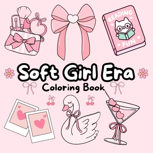 Soft Girl Era Coloring Book: Simple and Relaxing Bold and Aesthetic Designs for Adults and Kids Featuring Cute Things,Girly Cosmetics,Flowers, Easy To Color for Stress Relief.