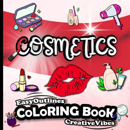 EASY COLORING BOOK - COSMETICS: Variety Of Simple And Large Designs To Color - Thick Outlined Images - Coloring Pages For All Ages (Kids, Teens, Adults And Seniors) And Skill Levels