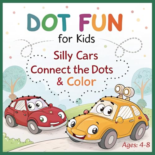 Dot Fun for Kids: Silly Cars Connect the Dots & Color: Fun and Easy Dot-to-Dot Car Puzzles for Kids Ages 4–8 – Numbers 1 to 55 – With 33 Cute Cartoon Illustrations to Color!