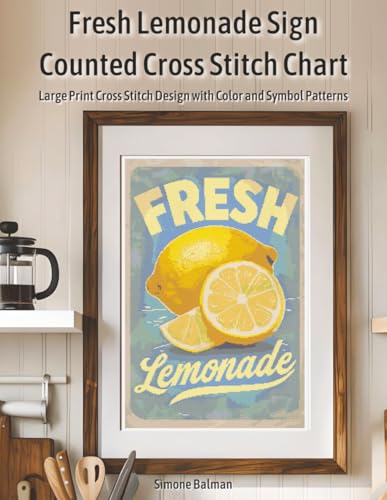 Fresh Lemonade Sign Counted Cross Stitch Chart: Large Print Cross Stitch Design with Color and Symbol Patterns