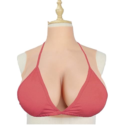 Silikonbröstbröst med hög krage bomullsfyllda bröstformer B-H Cup Crossdressing Kläder Falska bröst för Cosplay Drag Queen(Size:D Cup,Color:Color 1)