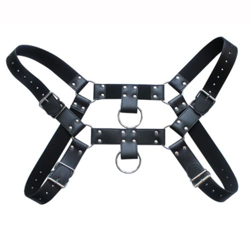 Män Gay Läder Sele Justerbar Sexuell Body Bondage Burbälten Rave Gay kläder(Size:En storlek,Color:Svart)