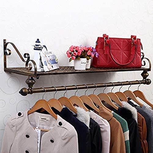 FANNKE Iron Retro kläder rack klädaffär hängare Display Rack montrar Wall Hanger Barnkläder Hylla Hyllplan (Color : Bronze, Size : 100x28 cm)
