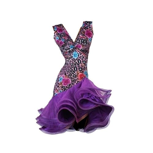 Dans kostymer Latin Dansklänning Övningskläder V-ringad Ärmlös Cha-cha Rumba Danskläder Kvinnliga Vuxna Professionella Performance Kläder (Color : Purple, Size : L)