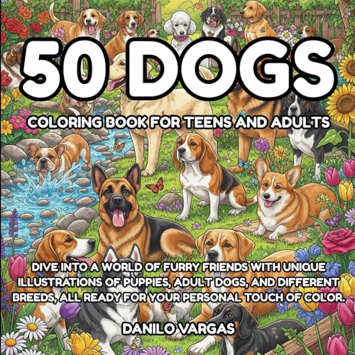 50 Dogs Coloring Book For Teens And Adults: Dive into a world of furry friends with unique illustrations of puppies, adult dogs, and different breeds, all ready for your personal touch of color.