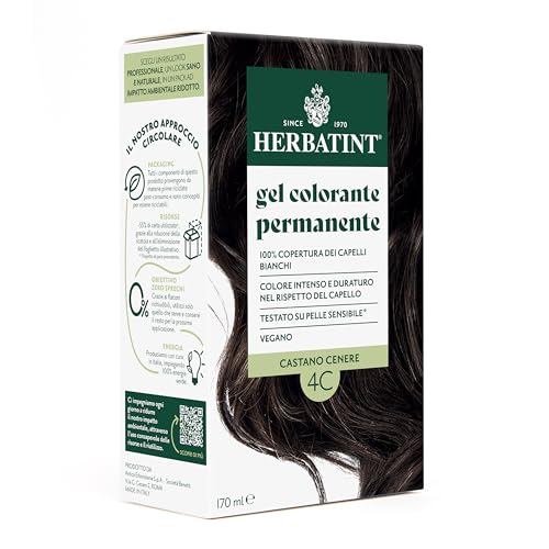 Herbatint Permanent hårfärgningsgel 4C askbrunt hår - 170 ml | Ammoniakfri, 100% täckning av vitt hår | för känslig hud, med 8 naturliga ekologiska extrakt