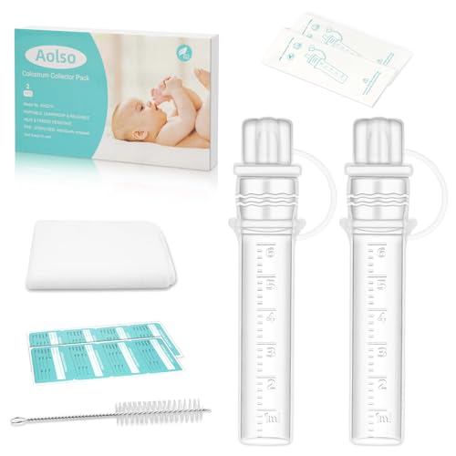 Aolso Colostrum Collector, 2 st. återanvändbar bröstmjölkssamlare, silikon råmjölk samlare BPA-fri, mångsidig samlare bärbar, med bomullsrengöringsduk, etikettklistermärken, 6 ml