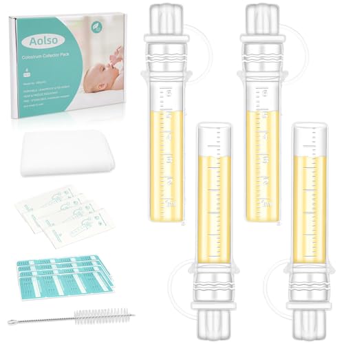 Aolso Colostrum Collector, 4 st. återanvändbar bröstmjölkssamlare, silikon råmjölk samlare BPA-fri, mångsidig samlare bärbar, med bomullsrengöringsduk, etikettklistermärken, 6 ml