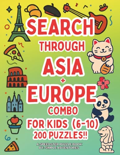 Search Through Asia and Europe for Kids (6-10) - Combo 200 puzzles: Brain-Boosting 10×10 Word Searches Across Asia & Europe - Screen-Free Fun that Builds Vocabulary & Focus (Ages 6–10)