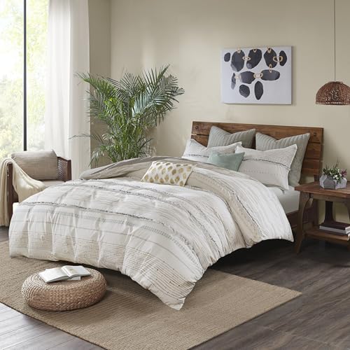 INK+IVY Nea 100% Cotton Duvet Set Mid Century Modern Design, All Season Comforter Cover Bedding Set, Matching Shams, King/Cal King, Stripes Teasel Ivory 3 Piece