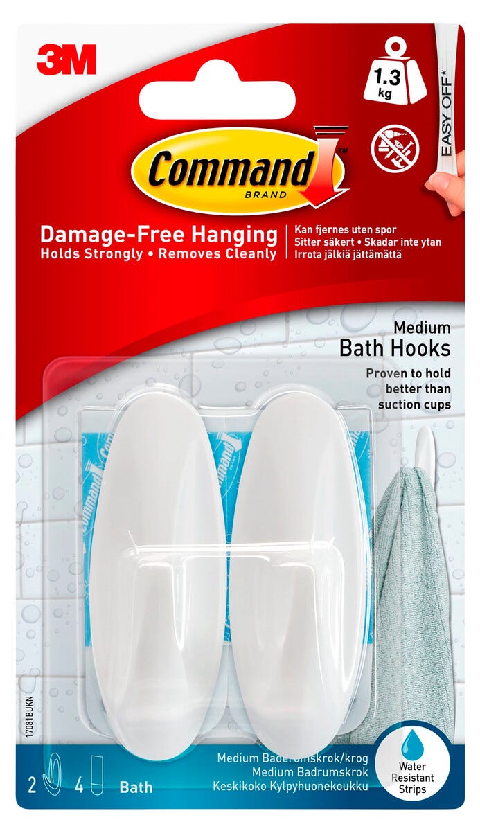 Command självhäftande krok, badrum enkel, medium, 1,3 kg