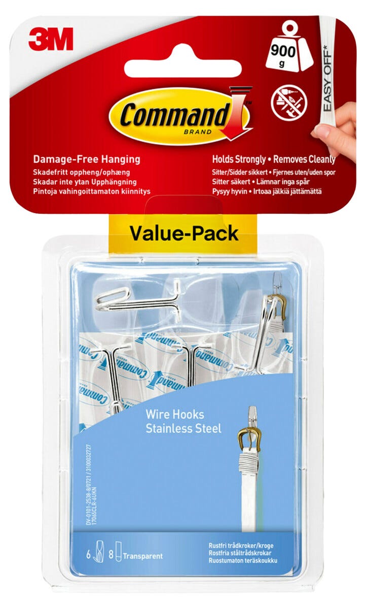 Command Value Pack självhäftande krok, rostfri ståltråd