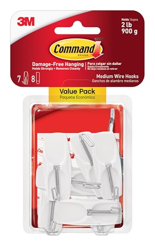Command Wire Toggle Hook, värdepaket – 7 krokar (medium, vit), 8 självhäftande remsor – avtagbar hängande krok för olika ytor – skadefri upphängning