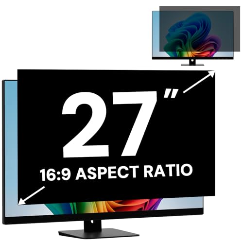 27 Inch Computer Monitor Privacy Screen Filter for 16:9 Aspect Ratio Monitor, Removable Computer Screen Privacy Shield and 27 Inch Anti Blue Light Glare Filter