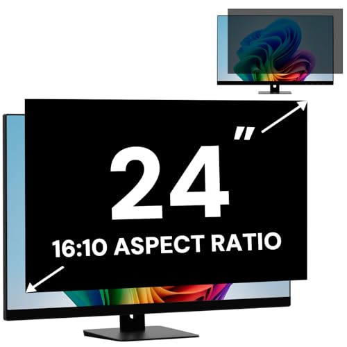 24 Inch Computer Privacy Screen Filter for 16:10 Widescreen Monitor, Removable Computer Screen Privacy Shield and Anti Blue Light Glare Filter