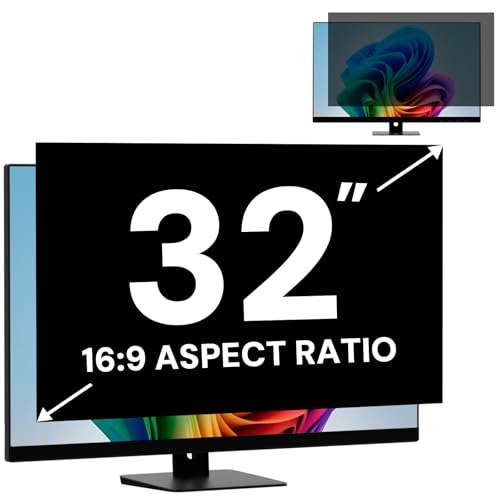 32 Inch Computer Monitor Privacy Screen Filter for 16:9 Aspect Ratio Monitor, Removable Computer Screen Privacy Shield and 32 Inch Anti Blue Light Glare Filter
