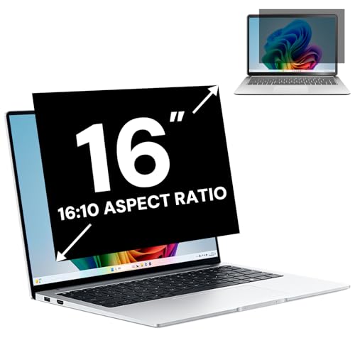 16 Inch 16:10 Laptop Privacy Screen Filter, Computer Monitor Privacy Shield and Anti Glare Blue Light Filter, Removable 16" Screen Protector and Scratch Resistant