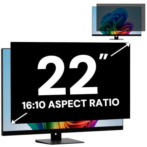 22 Inch Computer Privacy Screen Filter for 16:10 Widescreen Monitor, Removable Computer Screen Privacy Shield and 22 Inch Anti Blue Light Glare Filter