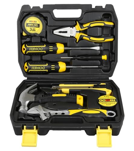 DOWELL 10 Piece Small Tool Kit,Mini Portable Tool Set,Home Repair Hand Tool Kit with Plastic Tool box Storage Case