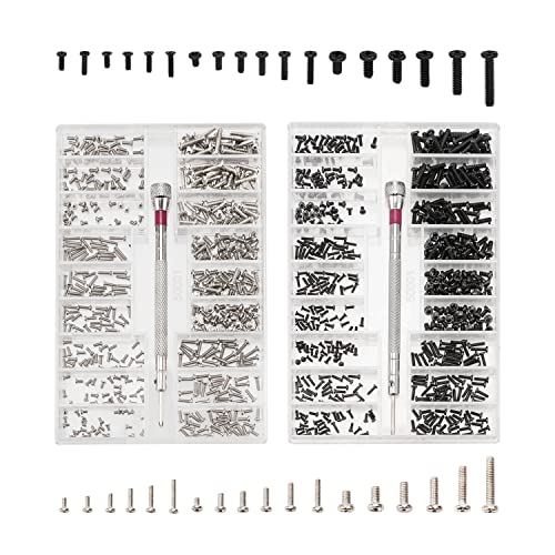YIXISI 1000 Stycken Tiny Micro Repair Screw Kit, M1.2 M1.4 M2 Watch Glasses Computer Replacement Screws Kit, Rostfritt stål Tiny Skruvar med skruvmejsel, Silver och Svart