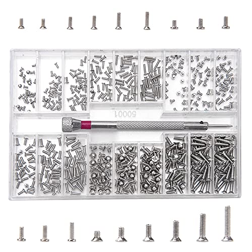 YIXISI 500 ST Tiny Micro Repair Screw Kit, M1.2 M1.4 M2 Watch Glasses Computer Replacement Screws Kit, Rostfritt stål Tiny Skruvar med skruvmejsel, Silver