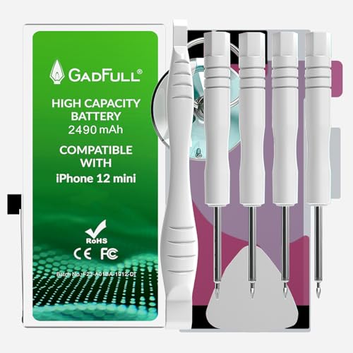 GadFull battery compatible with high capacity iPhone 12 Mini | 2024 Year of Manufacture | Incl. Repair Kit Instructions & Professional Kit Tool Kit | without Charge Cycles | Works with