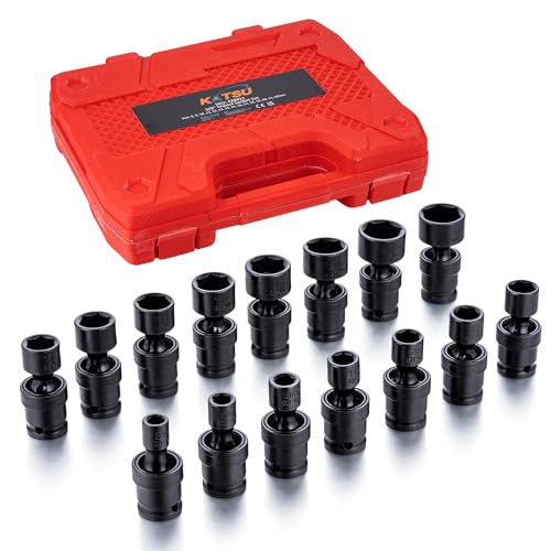 KATSU 3/8" Drive Impact Swivel Socket Set 15pcs Metric 8-22mm 6 Points Wobble Shallow Sockets, Chrome Moly Steel Mechanical Tool Automatic Repair Garage 420411