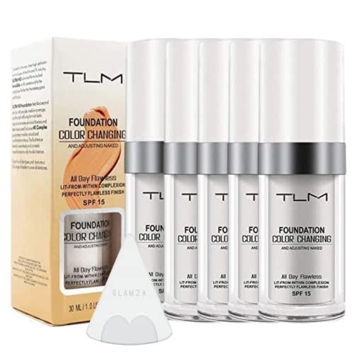 TLM färgändrande foundation concealer – x5 30 ml full täckning felfri naturlig makeupkräm blandar till alla hudtoner plus blandningssvamp