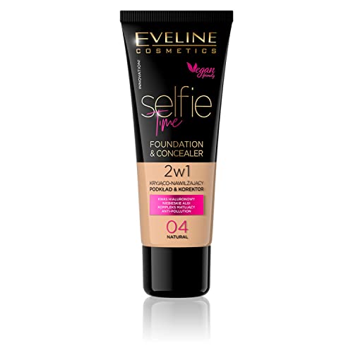 Eveline Cosmetics Selfie Time Hydrating Concealer & Foundation No 04 Natural – uppbyggande opacitet, hyaluronsyra, E-vitamin, blåalger – 30 ml