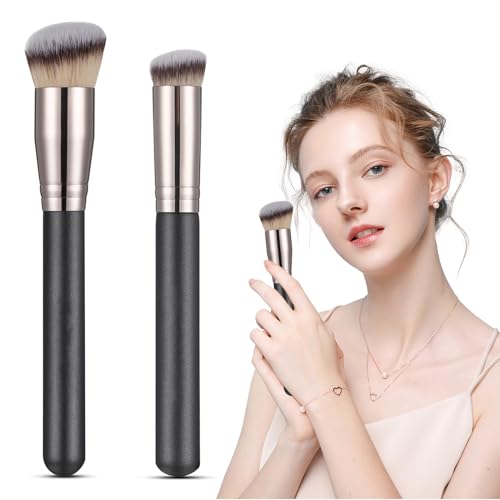 Kryzalite® 2 stycken Kabuki-penslar, ger en felfri look, vinklad foundation, concealer och konturborste med täta syntetiska borst (brun färggradien)