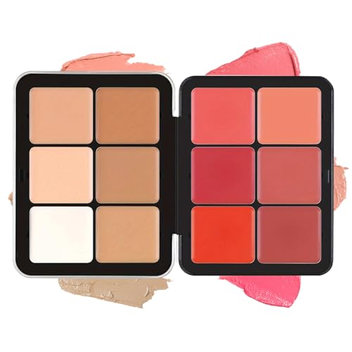 KARLOR Krämig kontur blush palett, 12 färger concealer rouge konturer paletter, 6 rouge 6 konturing concealer makeup krämig rodnad matt byggbar