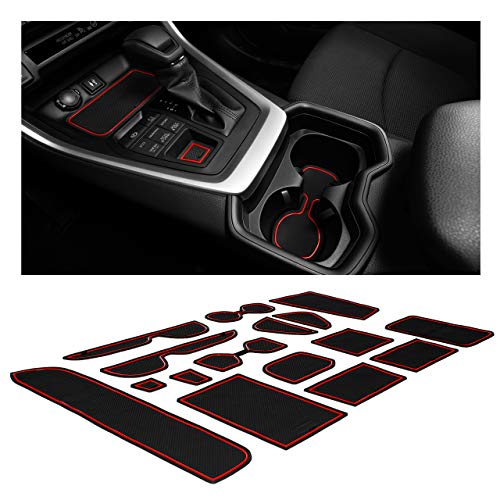 CupHolderHero Fits Toyota RAV4 2019-2024 Accessories, Premium Custom Non-Slip Anti-Dust Cup Holder Inserts, Center Console Liners, Door Pocket Mats, Interior Protection, 15pc Set, Red Trim