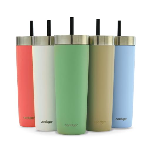 Contigo No-Spill-glas med sugrör 720 ml | 100% läckagesäker och spillsäker | rostfritt stål vakuumisolerad vattenflaska med lock | kall i 14 timmar | resemugg | termisk flaska | BPA-fri
