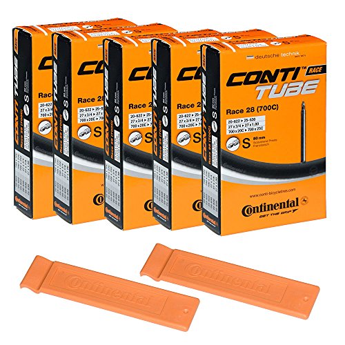 Continental Bicycle Tubes Race 28 700x20-25 S80 Presta Valve 80mm Bike Tube Super Value Bundle (Pack of 5 Conti Tubes & 2 Conti Race tire Lever)