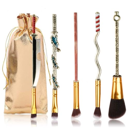 Makeup Borste Metal Demon Slayer Anime för Foundation Blush Eyeshadow Face Concealer Eyeliner Contour Powder Liquid Eye, gåva för tjejer kvinnor, 5 st, guld