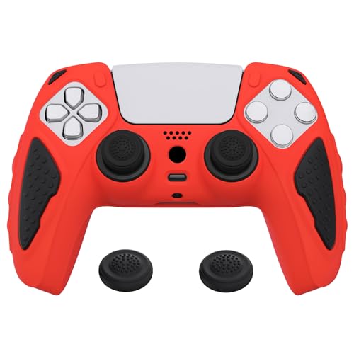 PlayVital Halkskydd Silikonskal för ps5-Controller,Skydd Fodral Hud för ps5,Tvåfärgad Hölje för ps5-kontroller med Tumgrepps-Svart & Röd(Knight Edition)