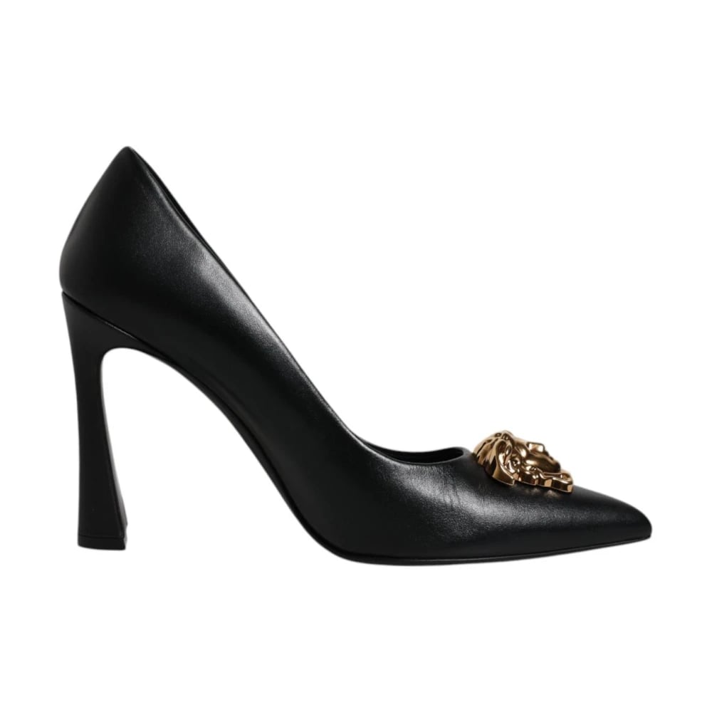 Versace, Skor , Dam, 38 EU, Läder, Svart Läder Höga Klackar Pumps