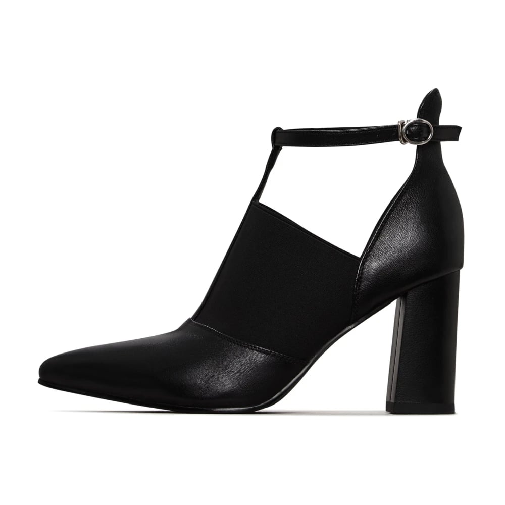 Cesare Gaspari, Skor , Dam, 36 EU, Läder, Höga T-rem blockklackar - Lack svart