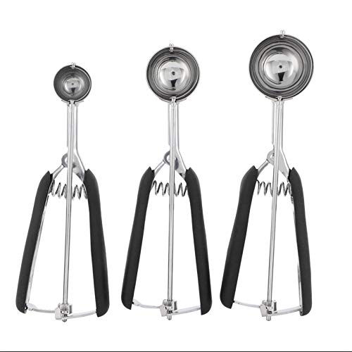 Cookie Scoop Set, Ice Cream Scoop Set, Diskmaskin i Flera Storlekar och Färger, Cupcake Scoop i Rostfritt Stål, Metal Ice Cream Scoop Spoon Säker i Diskmaskin, Passar för Frozen(4.7CM-Svart)