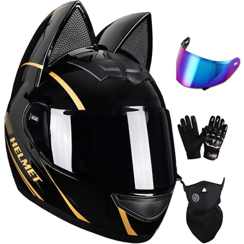 Girl Cat Ear Helmet, Kvinnor Motorcykelhjälm, Cat Ear Helmet, Cool Electric Motorbike Racing Motorcykelhjälm For Män Och Kvinnor(B,XL=60~62CM)