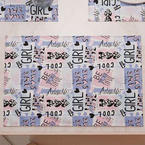 PETTI Artigiani Italiani - Amerikanska bordstabletter med digitalt tryck, amerikanska bordstabletter av tyg och tvättbara (set om 6–30 x 45 cm) Girl Cool, 100% tillverkad i Italien
