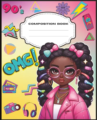 "90’s Vibes Composition Notebook for Girls: Retro Cute College Ruled Journal with Cool Black Girl Cover – 100 Pages, 9.75 x 7.5 School Notebook": ... or back-to-school gifts for girls ages