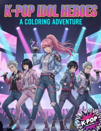 K-POP IDOL HEROES: Anime Kpop Coloring Adventure: Cool Girl and Boy Star Characters, Concert Stages, Demon Hunter Scenes and Poster Pages to Color