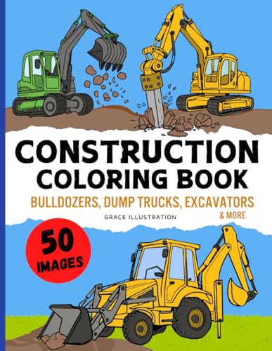 Construction Vehicles Coloring Book: Cool Bulldozers, Dump Trucks, Diggers, Cranes, Excavators & More for Kids Aged 4-8 Boys and Girls
