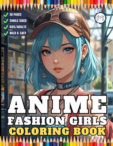 50 Pages Cool Anime Fashion Girls Coloring Book Gift for Adult Women Girls Teens Young Kids Youth One Sided Manga Anime Girls Coloring Activity Sheets ... Anime Girls Coloring Book for Anime Lovers