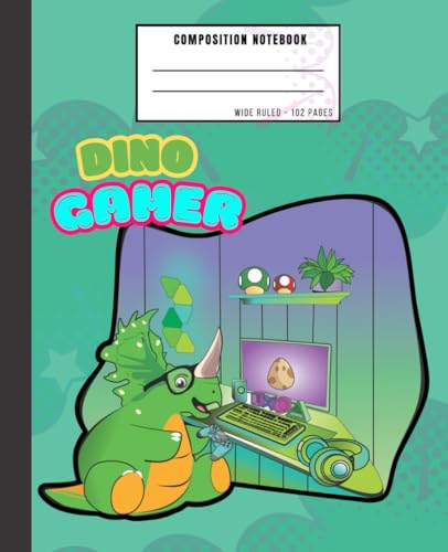 Dinosaur Composition Notebook. Dino Gamer Wide Ruled Blank Lined Notebook For Kids And Teens With a Coloring Page Inside: Lined Journal Of a Cool ... Girls, Students. Dinosaur Playing In His Room