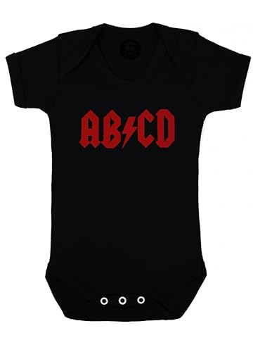 Baby Moo's AB/CD ROCK N ROLL Baby Grow for Boys or Girls | Cool Rock Band Inspirerad Metall Baby Bodysuit - Unik present till barn eller föräldrar UK, Svart, 0-3 månader
