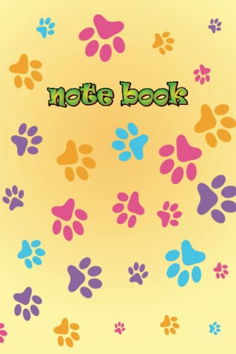 note book: Cool note book , with a calm yellow cover decorated with cute dog steps , 110 pages , Ideal for kids and girls 4-12